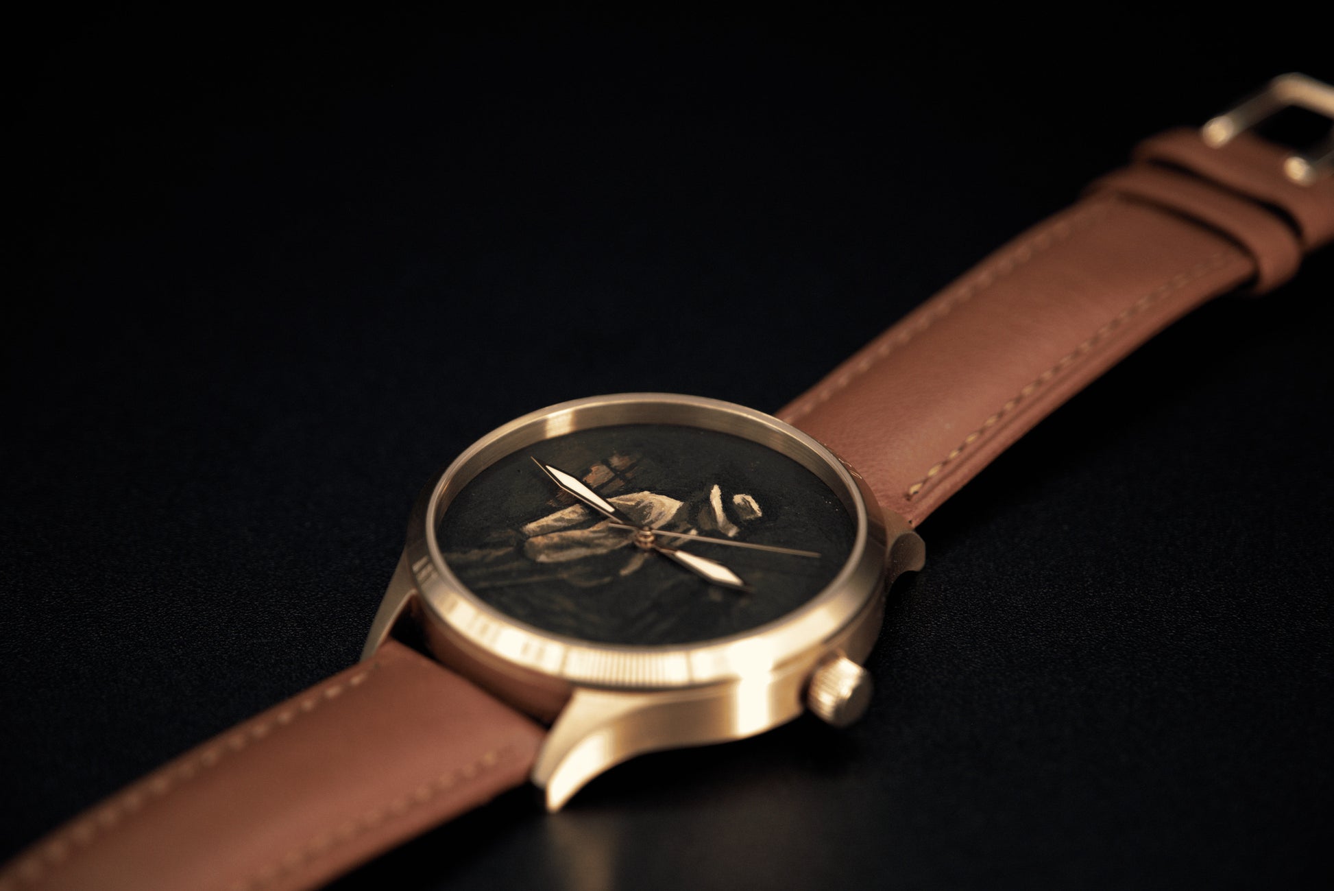 "Smooth Criminal" is a complete ArtePolso timepiece built around a hand-painted acrylic dial by Swedish artist Améline Alterman Ivars . The dial's moody, cinematic silhouette nods to classic stage elegance—each piece is painted by hand, so no two watches are exactly alike.